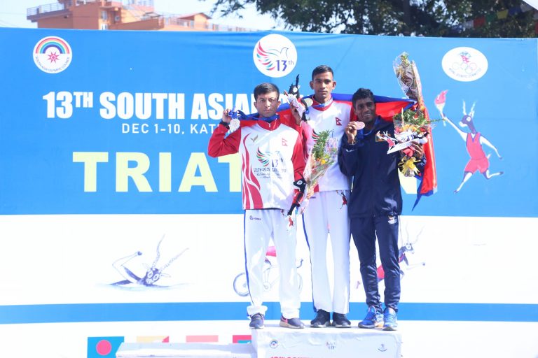 पोखरा, १३ औं दक्षिण एसियाली खेलकुद (साग) अन्तरगत पोखरामा सम्पन्न भएको ट्राईयाथलन खेलमा नेपालले २ स्वर्ण, ३ रजत र १ कास्य पदक प्राप्त गर्न सफल भएको छ ।
