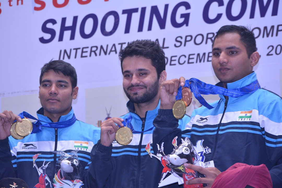 काठमाडौं, २२ मंसिर । १३ औं दक्षिण एसियाली खेलकुद (साग) अन्तर्गत सुटिङको १० मिटर एयर पेस्तोलका दुवै इभेन्ट्समा भारतल नै स्वर्ण पदक जितेको छ । सुटिङका २० मध्ये १७ वटा स्वर्ण पदक भारतले जितेको छ भने २ वटा स्वर्ण पदक पाकिस्तानले हात पारेको छ । नेपाल अहिलेसम्म सुटिङमा पदकविहीन छ । सुटिङको एउटा स्वर्ण पदकका लागि सोमबार प्रतिस्पर्धा हुने छ ।