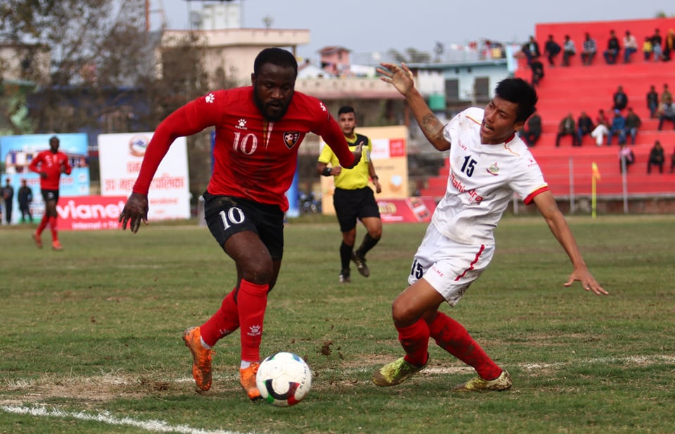 खेलमा सुरुवाती अग्रता भने एनआरटीले बनाएको थियो । खेलको ३९ औं मिनेटमा दर्शनले गोल गर्दै एनआरटीलाई अग्रता दिलाएका थिए । कप्तान प्रकाश बुढाथोकीले मिलाएको पासलाई दर्शनले डिबक्स भित्रबाट पहिलो बारमा सुन्दर गोल गरेका थिए । तर, दोस्रो हाफमा एपीएफ खेलमा फर्कियो । खेलको ६१ औं मिनेटमा रमेशले गोल गर्दै एपीएफलाई १–१ गोलको बराबरीमा ल्याए । सुदिप शिख्राकारको कर्नरमा अनमार्क रहेका डिफेन्डर रमेशले हेड गोल गरे ।